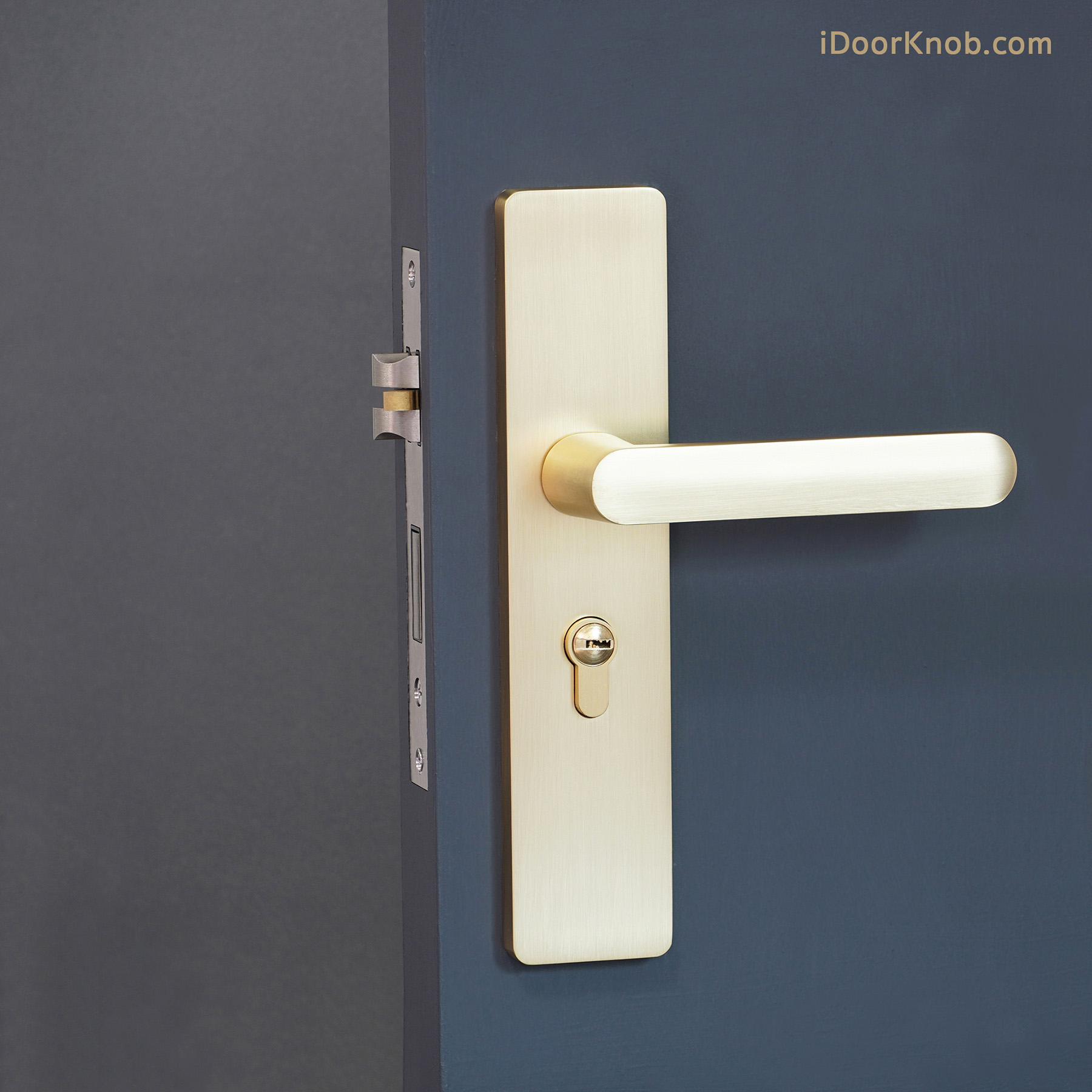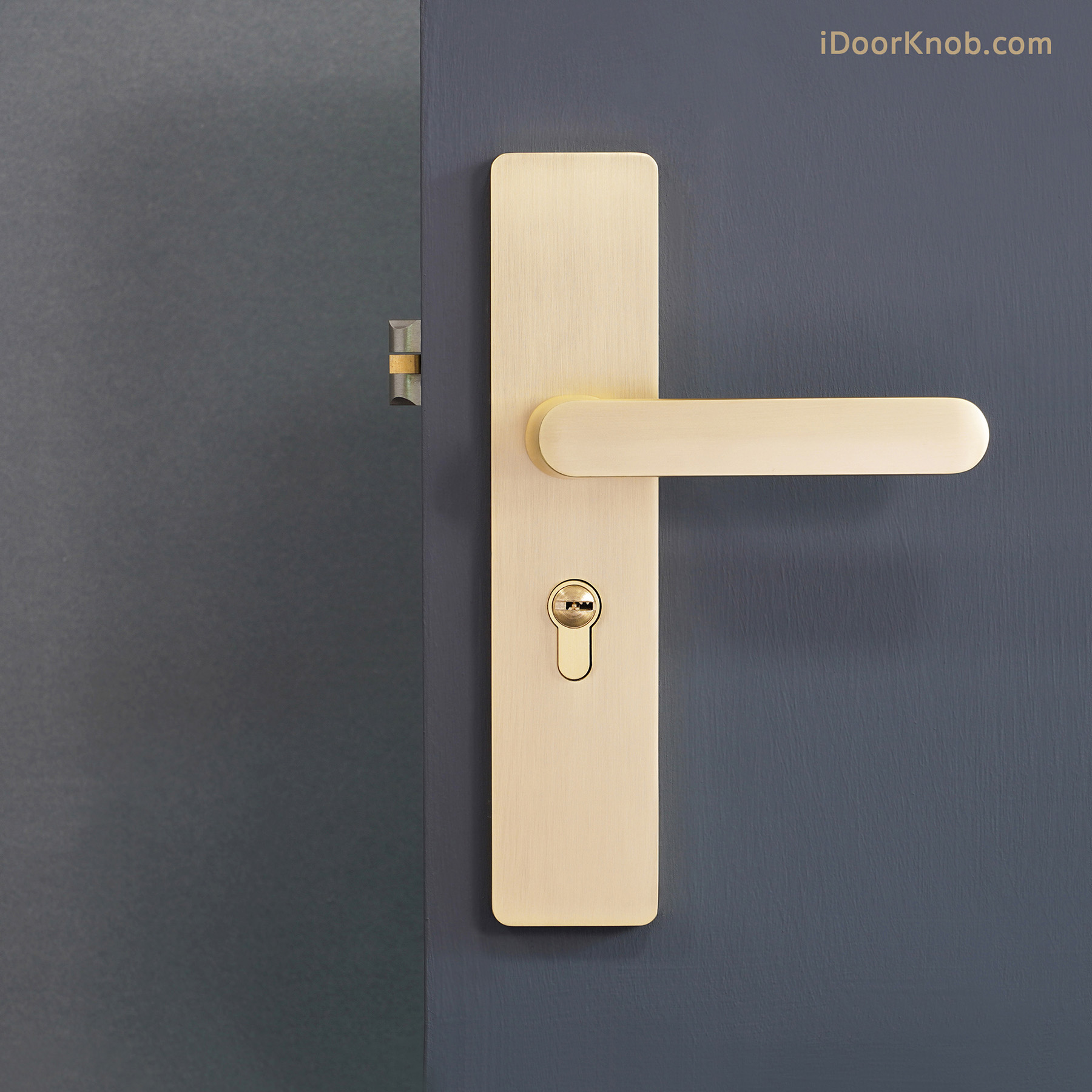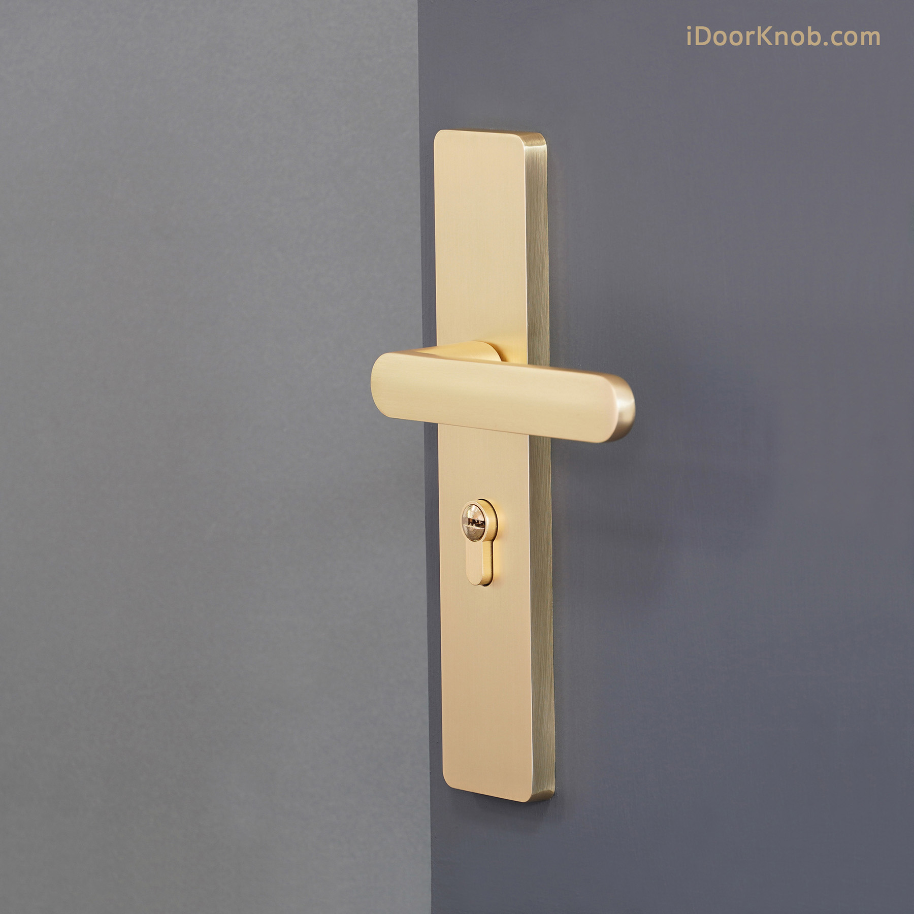 ชุดมือจับก้านโยกเพลทยาว ลูกบิดประตูแบบก้านโยก สีทองด้าน Brushed Gold เกรดพรีเมี่ยม รุ่น TG68