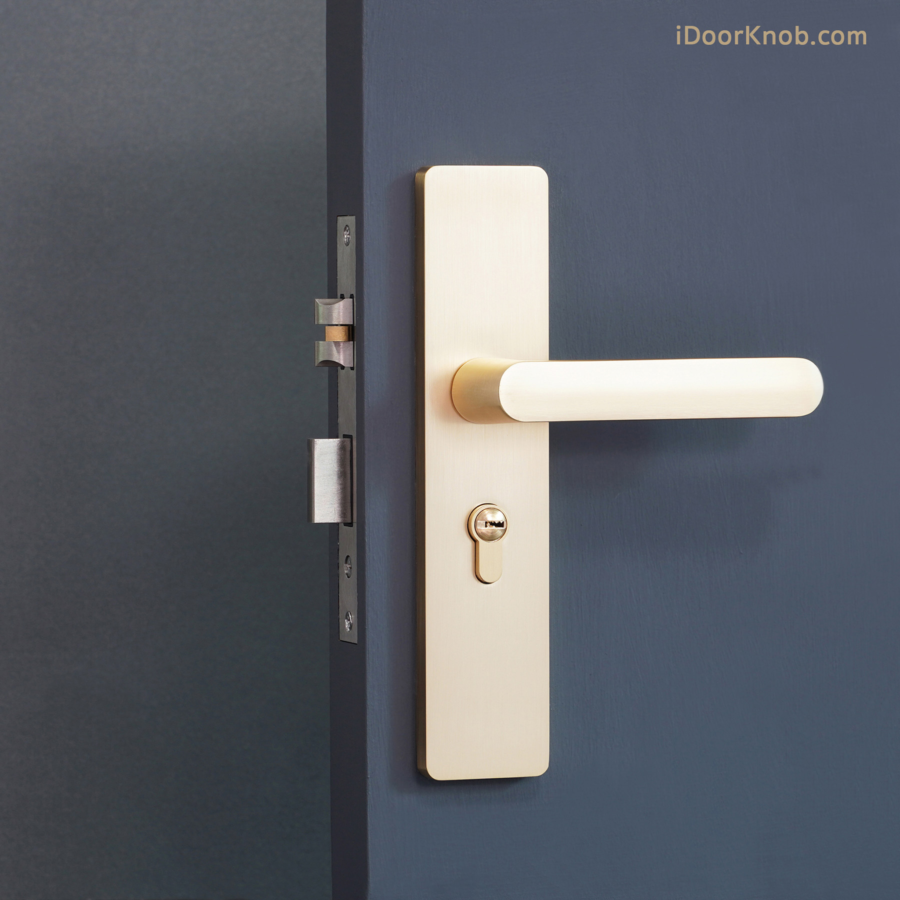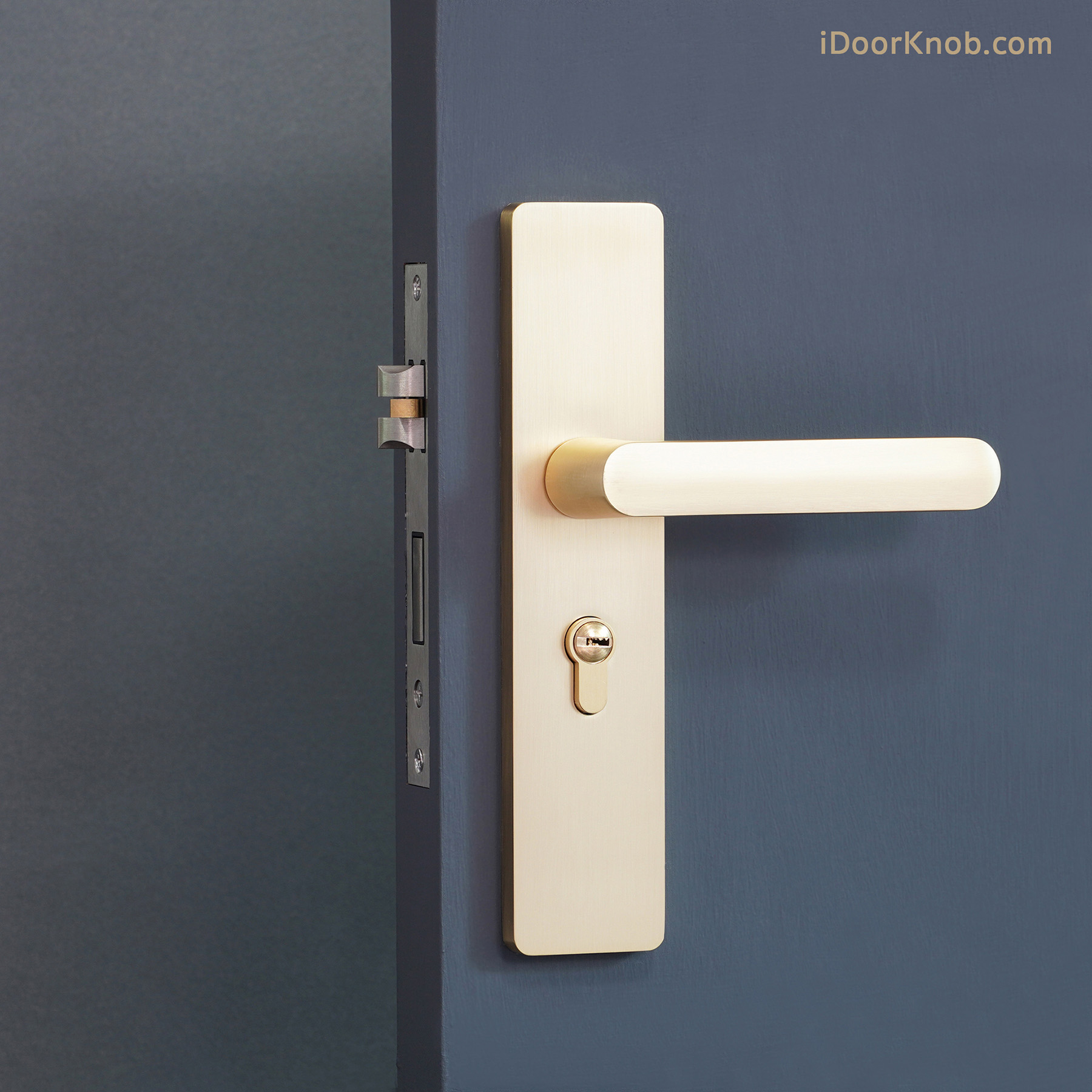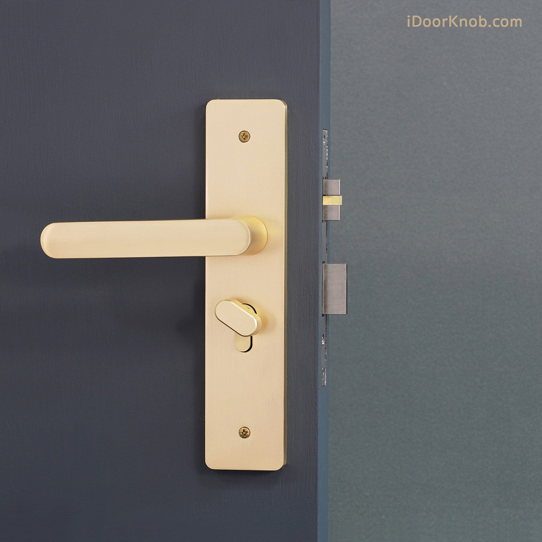 ชุดมือจับก้านโยกเพลทยาว ลูกบิดประตูแบบก้านโยก สีทองด้าน Brushed Gold เกรดพรีเมี่ยม รุ่น TG68
